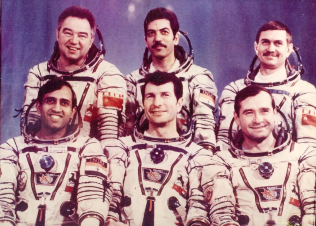 Ebenfalls im Rahmen des Interkosmos-Programms zusammen mit der Sowjetunion flog der erste Inder ins All. Rakesh Sharma blieb 1984 für 8 Tage auf der Raumstation Saljut 7.